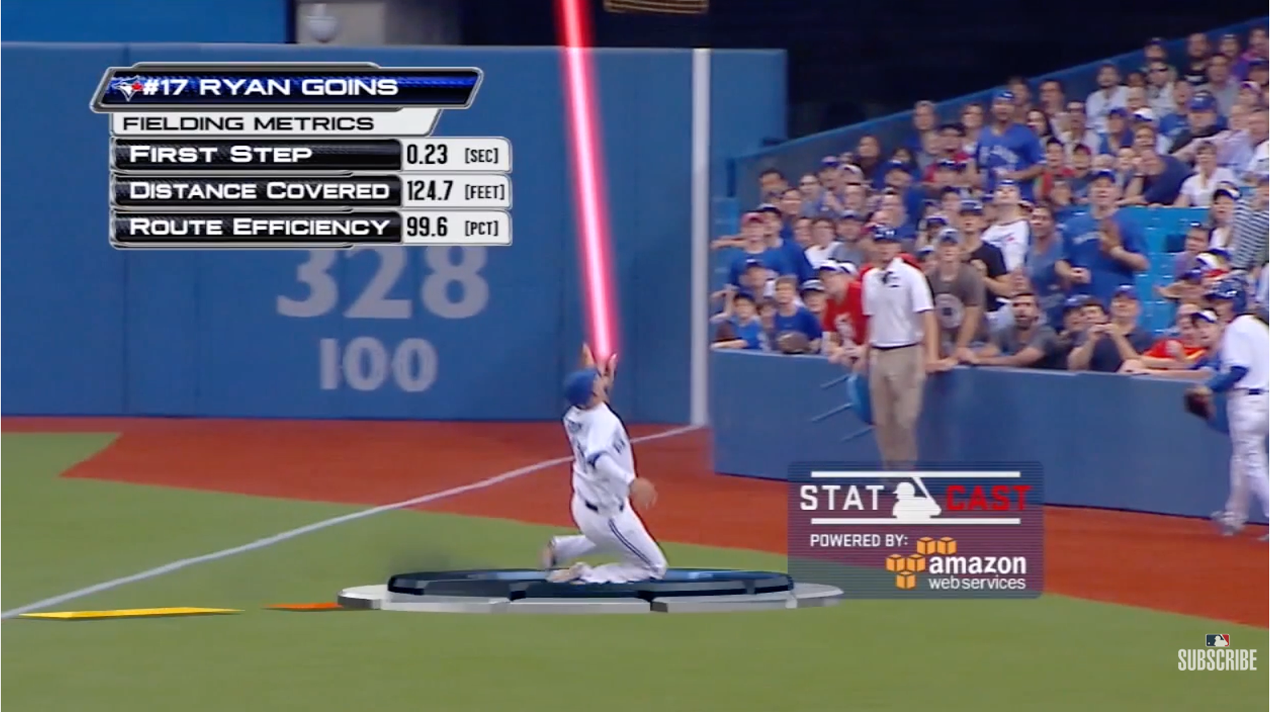 (수비 범위나 스피드 등을 분석하는 스탯캐스트, 출처 : MLB 유튜브)