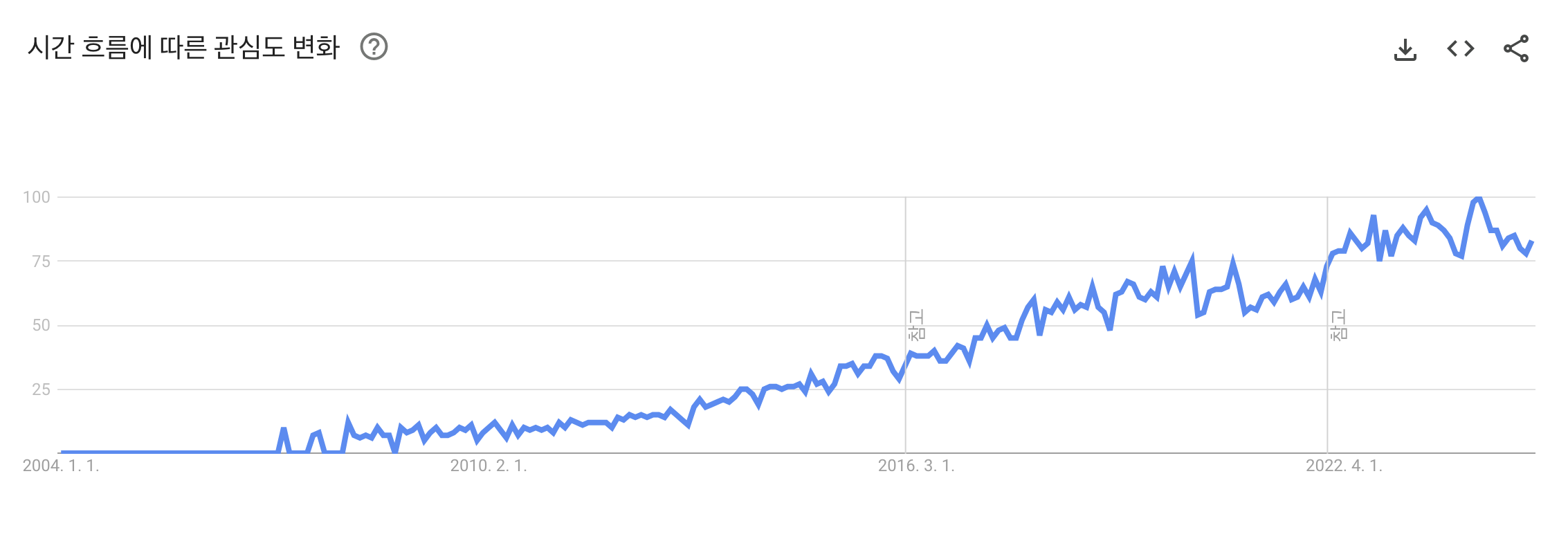 (지난 10년간의 ‘HR analytics’ 키워드 관심도 변화 / 출처 : 구글 트렌드)