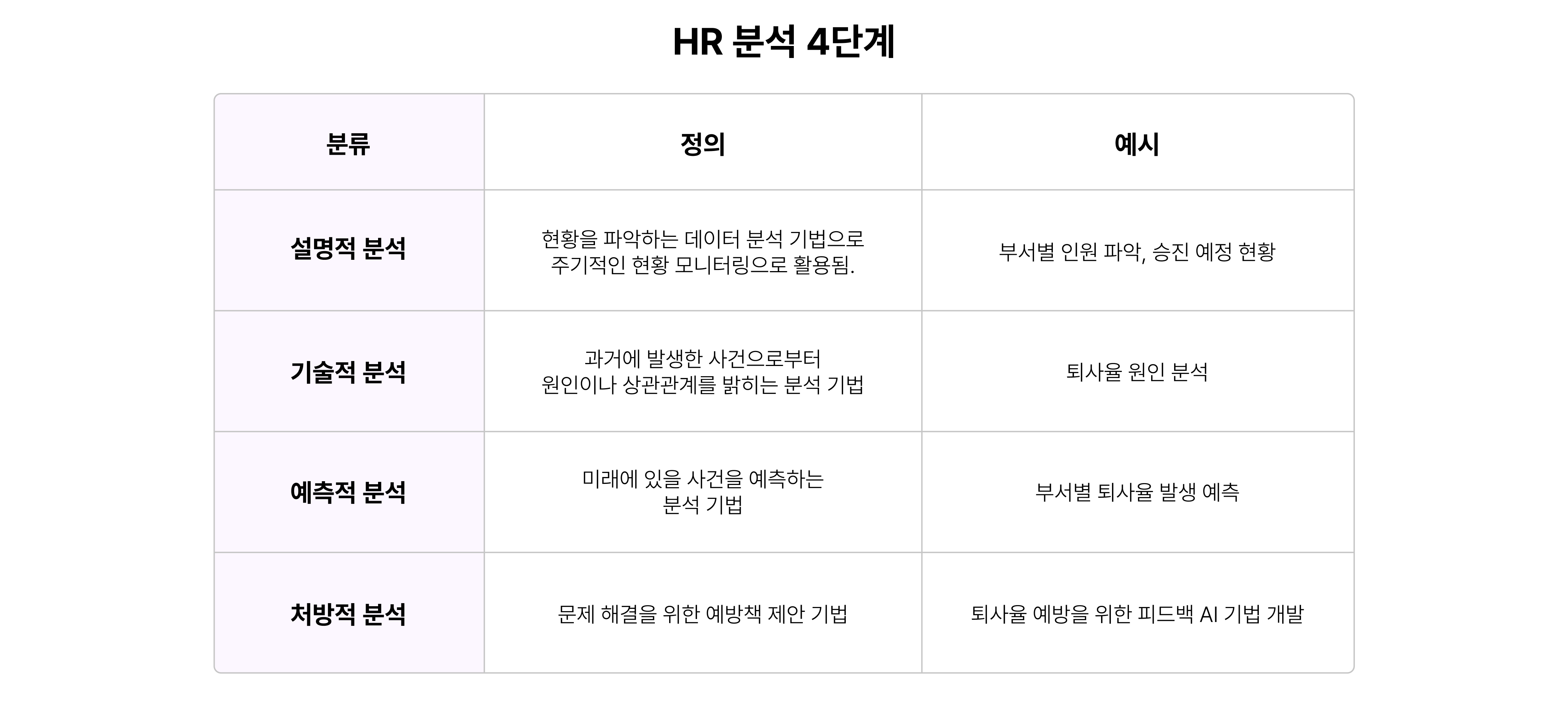 ✅ HR분석(HR analytics) 4단계 : 설명 - 진단 - 예측 - 처방